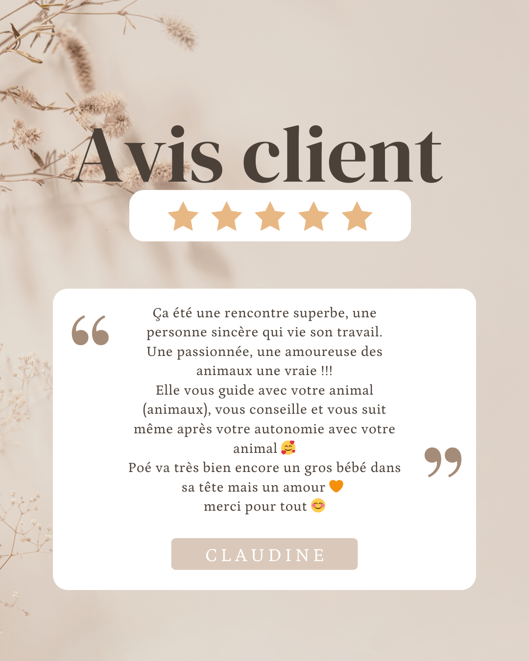 Pas de méthodes toutes faites : chaque accompagnement s’ajuste à vos besoins et à ceux de votre compagnon.
